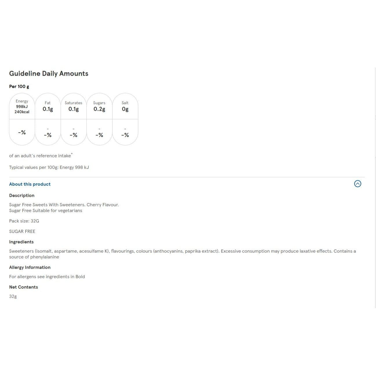 Halls Cherry Sugar Free Menthol Sweets, Clearing Menthol Action, Long-Lasting Freshness, 20 x 32g Pack